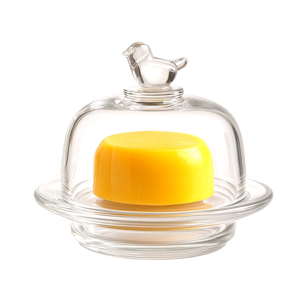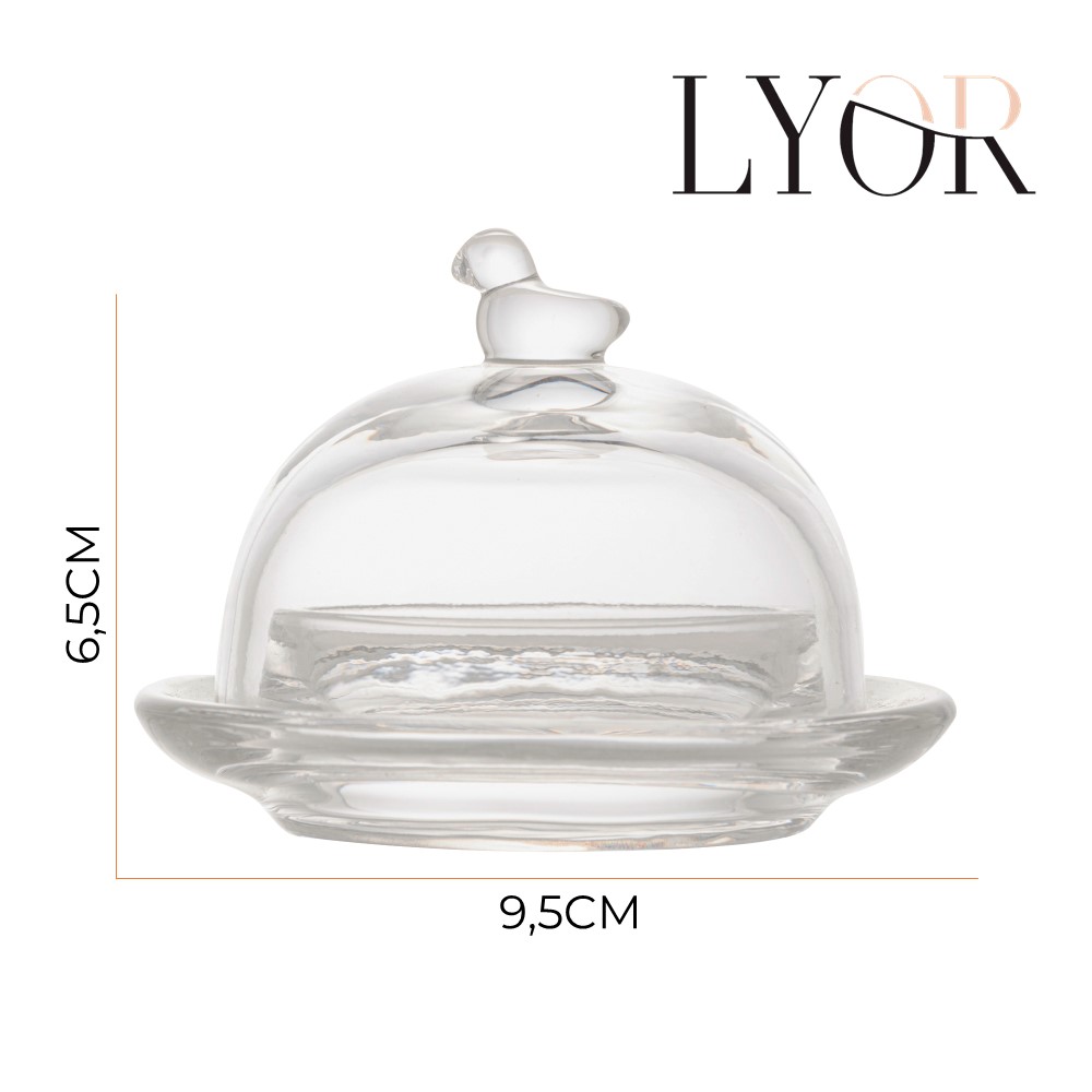 Manteigueira de Cristal Tampa com Pássaro Mesa Posta Lyor 9,5×6,5cm