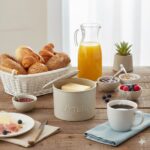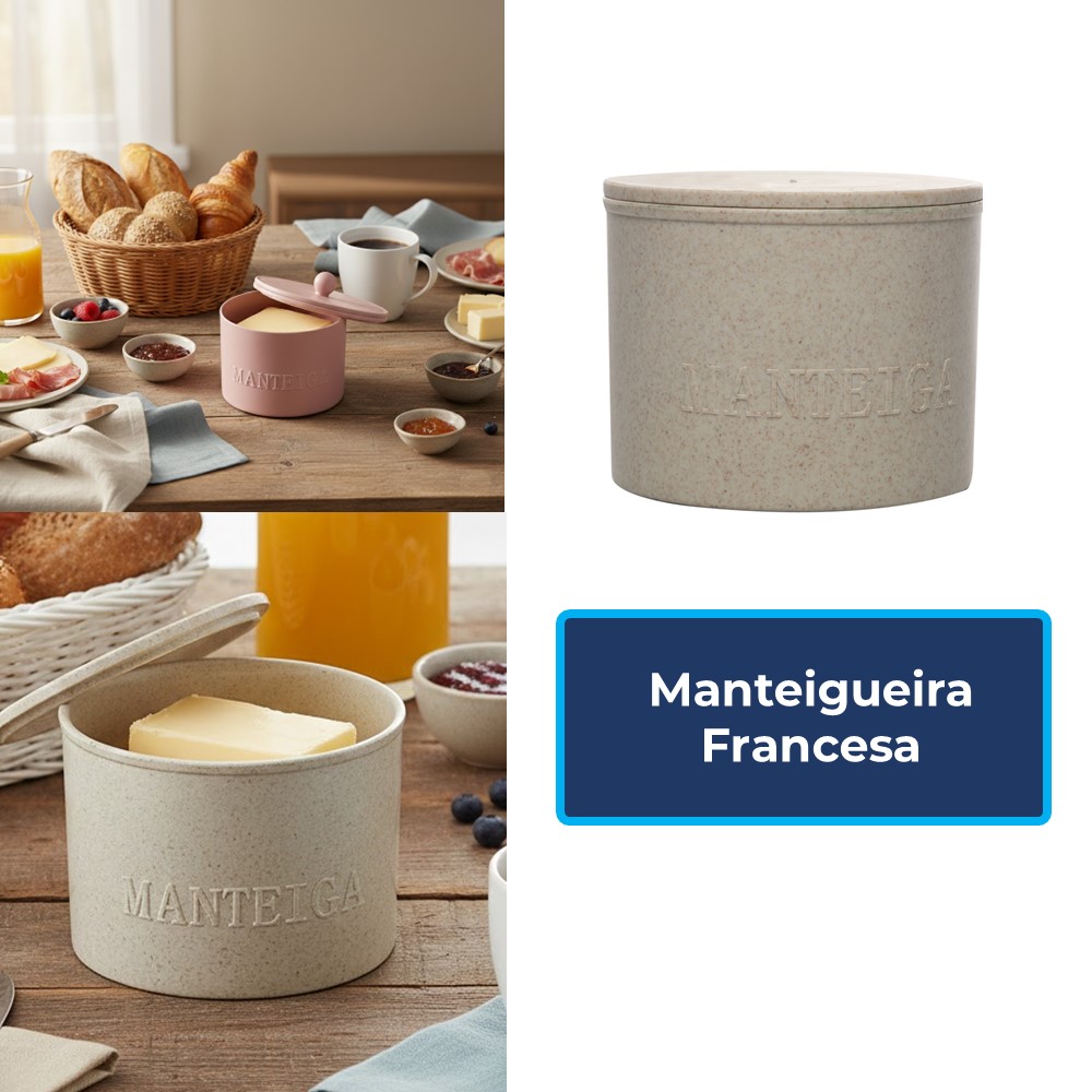 A Manteigueira Francesa em bambu e polipropileno (PP) acomoda uma peça de manteiga, mantendo-a protegida e facilitando o seu uso à mesa. Com dimensões de 8,5x10cm, apresenta cores sortidas, permitindo a combinação com diferentes estilos de decoração. Seu material, uma combinação de bambu e plástico PP, confere leveza à peça, tornando-a prática para o uso diário. A tampa protege a manteiga e auxilia na sua conservação.
