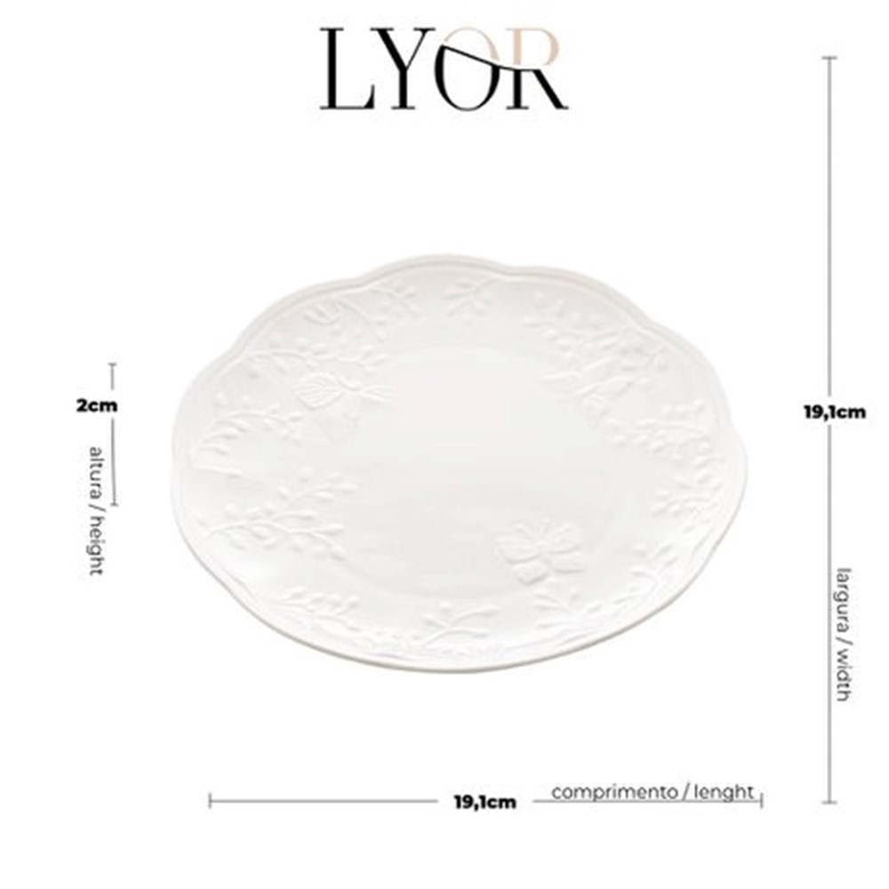 Prato de Sobremesa Porcelana New Bone Butterfly Branco Off White Lyor 19cm
