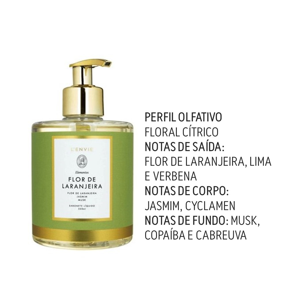 Sabonete Líquido Flor de Laranjeira Elementos Floral Cítrico 350ml Lenvie