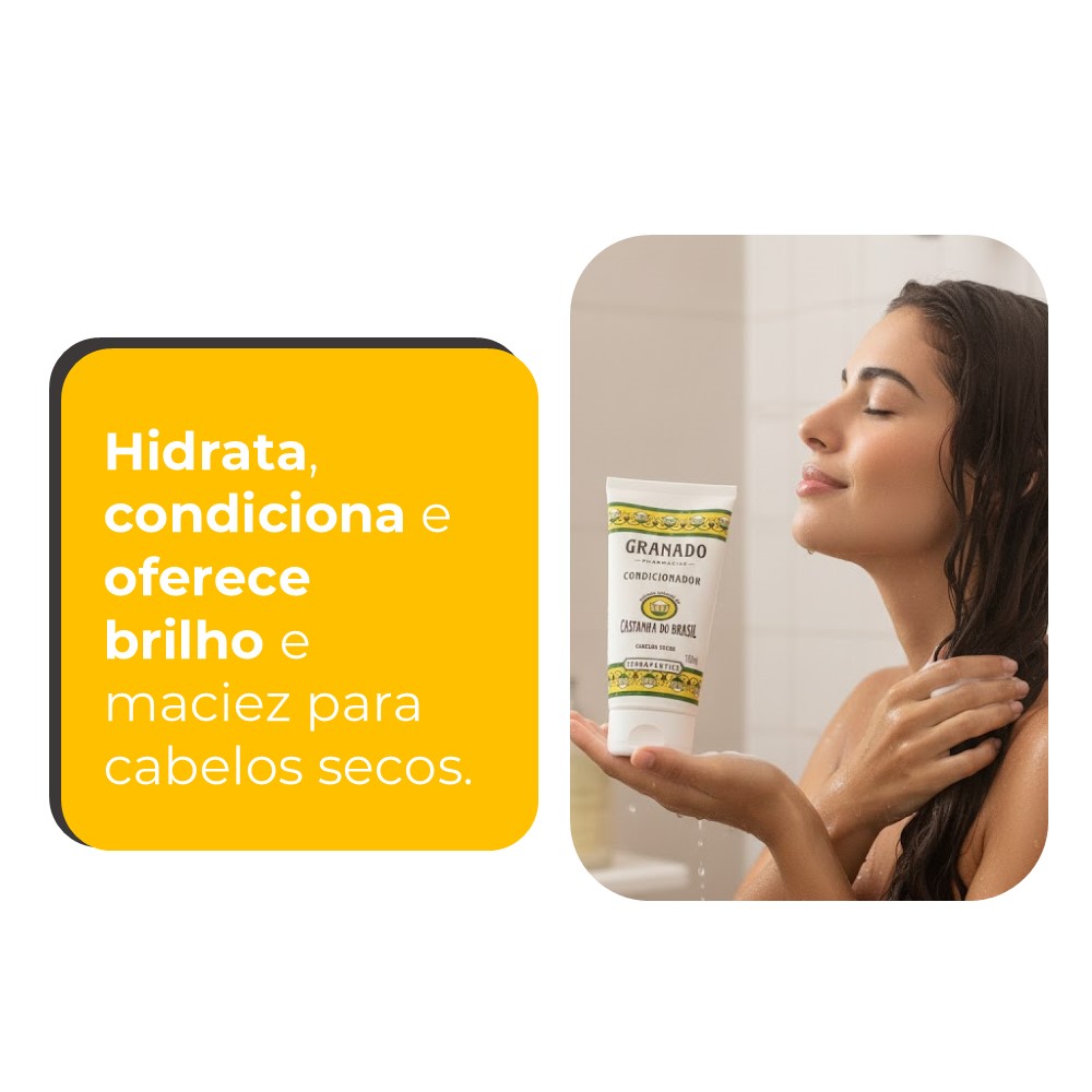 Limpa, hidrata, condiciona e oferece brilho e maciez para cabelos secos. Formulado com extrato natural de castanha do Brasil. Diminui o frizz e ajuda a desembaraçar o cabelo. Perfumação prolongada. Fórmula biodegradável. Livre de parabenos e ingredientes de origem animal.