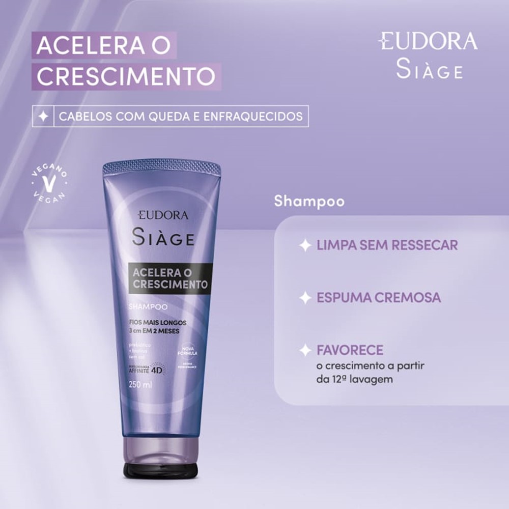 Shampoo Antiqueda Acelera o Crescimento dos Cabelos Fortalecimento Crescer 250ml Eudora Siàge