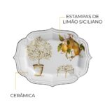A cerâmica de alta qualidade utilizada na fabricação facilita a limpeza, evitando a absorção de odores e manchas. A ausência de elementos decorativos complexos garante a versatilidade da peça, permitindo sua combinação com diferentes estilos de louças e decorações. As bordas laterais elevadas auxiliam no transporte seguro dos alimentos, minimizando o risco de derramamentos.