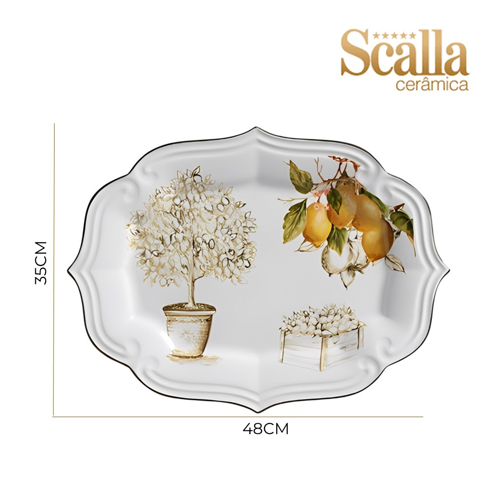 Travessa Bandeja de Cerâmica Branca Toscala Scalla 35x48cm