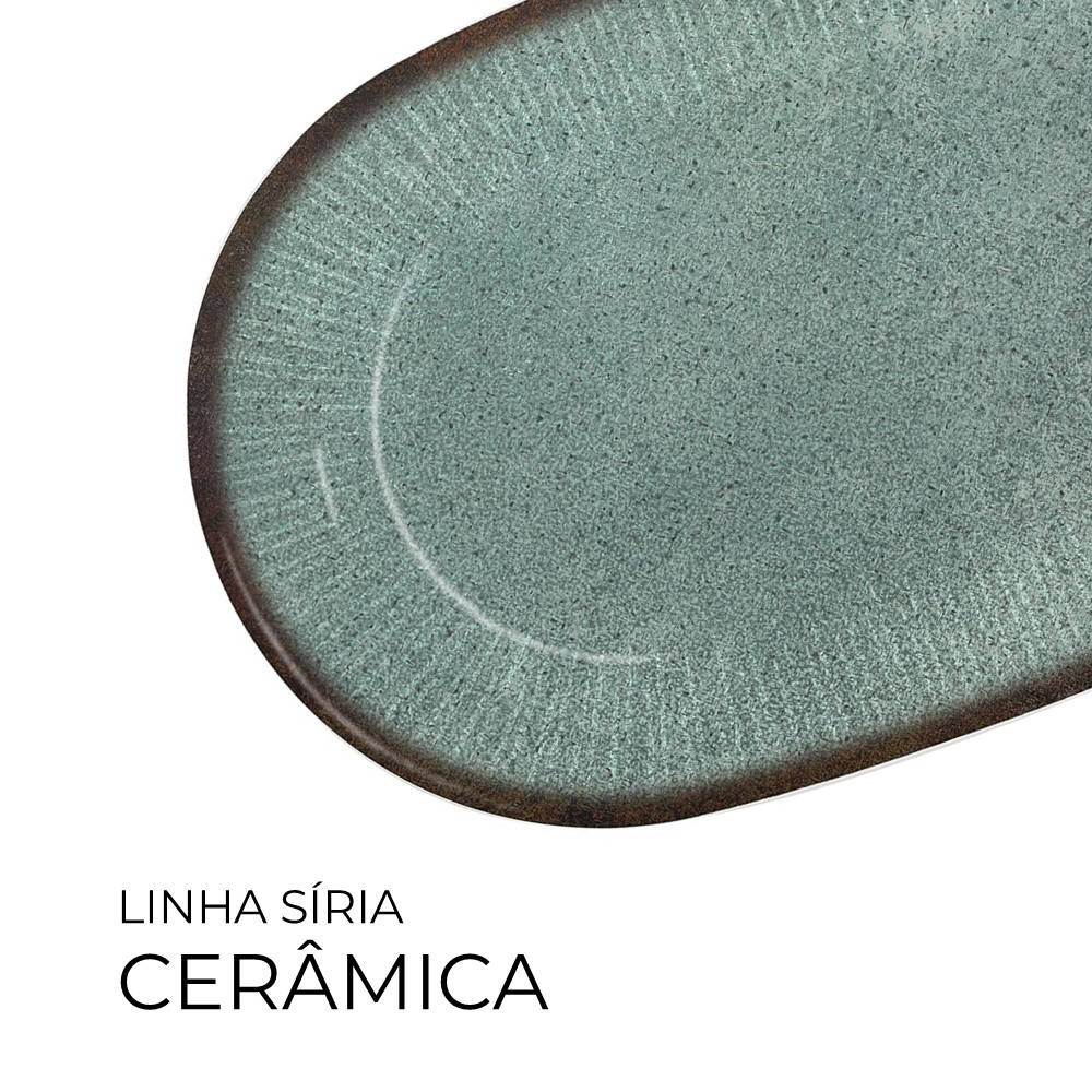 Construída em cerâmica, material que confere resistência e durabilidade, além de facilitar a limpeza após o uso. O esmalte verde Síria proporciona um acabamento uniforme e brilhante, agregando um toque estético diferenciado à mesa. A cerâmica também contribui para a manutenção da temperatura dos alimentos por mais tempo.