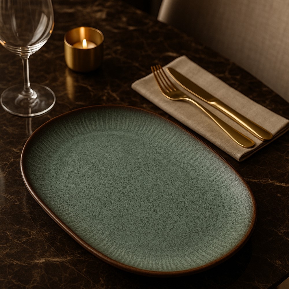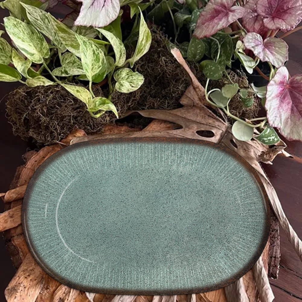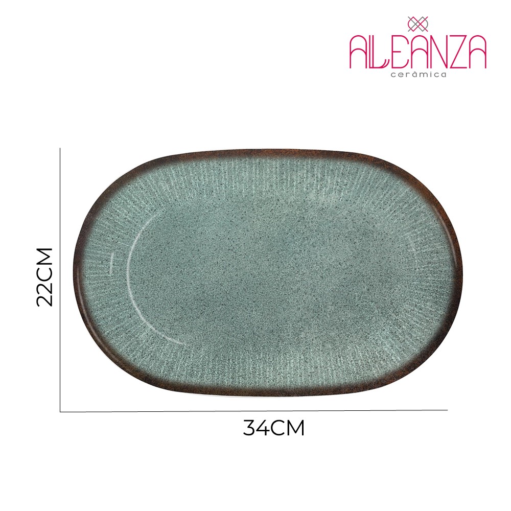 Travessa Bandeja de Cerâmica para Servir Síria Verde 22x34cm Alleanza