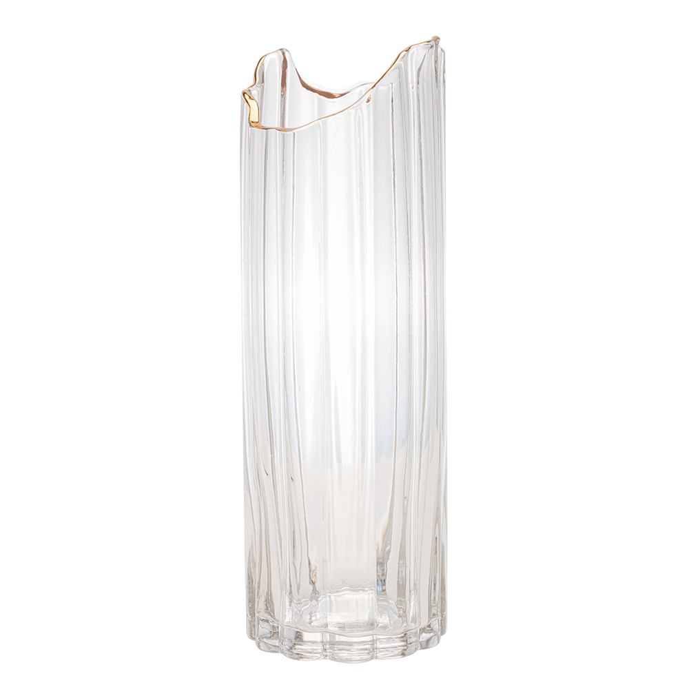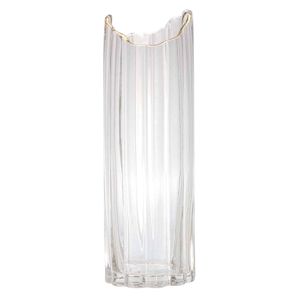 Vaso de Vidro Transparente com Borda Dourada para Flores Arranjos Plantas 10x30cm Wolff